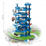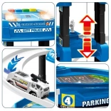 Sada s garážou obsahuje 2 autíčka, vrtuľník a podložku s mestom.