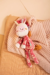 Roztomilá plyšová kamarátka do postieľky Jednorožec Lena od značky Lilliputiens pomôže deťom pokojne zaspať. Má svietiace pyžamko a masku na spanie, ktoré podporujú večerný rituál. Po krátkom nasvietení vydáva jemné, upokojujúce svetlo, je mäkučká a príjemná na dotyk. Možno prať na 30 °C na jemný cyklus.