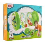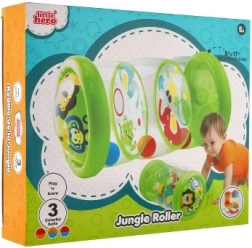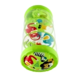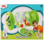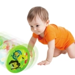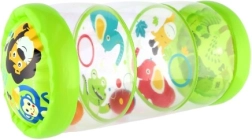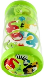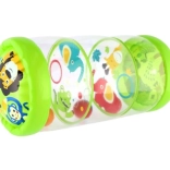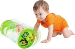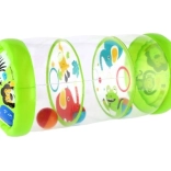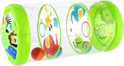 Valec je ozdobený pestrými ilustráciami zvierat a obsahuje tri loptičky, ktoré pri pohybe jemne chrastia, čo zabáva a stimuluje deti.