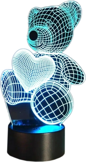 Urobte radosť sebe aj deťom štýlovým osvetlením. Medvedík s tlačeným srdcom na akrylovej doštičke vytvára pútavý 3D efekt a vďaka energeticky úsporným LED poslúži ako jemné orientačné svetlo aj relaxačná dekorácia. Voliť môžete stále svietenie alebo automatické striedanie farieb, všetko pohodlne cez priložený diaľkový ovládač.