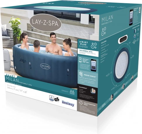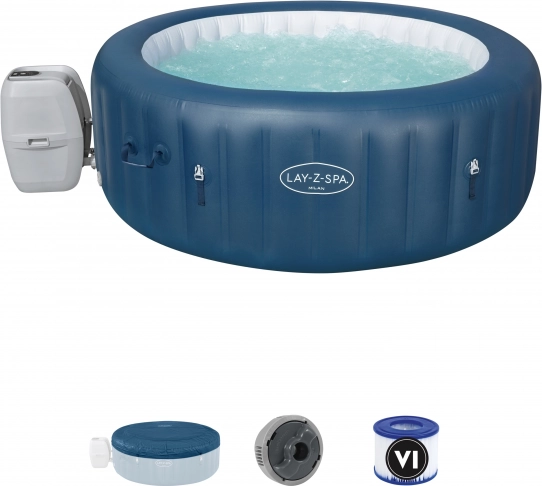 Užite si domáce wellness s nafukovacou vírivkou BESTWAY Lay‑Z‑Spa Milan pre až 6 osôb. Ponúka 140 vzduchových trysiek AirJet, ohrev vody až na 40 °C, Wi‑Fi ovládanie cez telefón a energeticky úspornú prevádzku. Odolná konštrukcia DuraPlus, integrovaná filtrácia vody a izolačný kryt zaistia pohodlie, bezpečie aj nízke náklady.