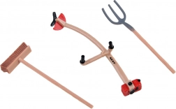 Postavička farmára, fúrik, hrable, vidly a ďalšie doplnky na realistické práce na farme.