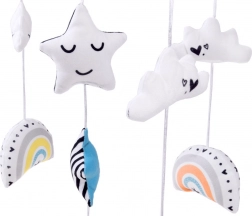 Tento kolotoč ponúka nielen vizuálnu, ale aj akustickú stimuláciu vďaka melódií, ktorú hrá pri otáčaní o 360 stupňov. Má praktický prepínač ON/OFF pre jednoduché ovládanie. Vyrobený z kvalitného plastu, plyšové prívesky je možné jednoducho zložiť a vyprať, čo uľahčuje ich údržbu.