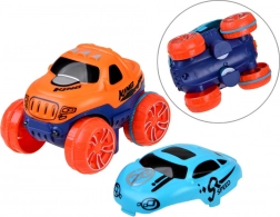 Autíčko po vložení 3× AAA batérií štartuje tlačidlom a počas jazdy svieti vpredu zeleno a vzadu červeno. Zadné kolesá s gumovými pásikmi zlepšujú priľnavosť.