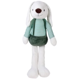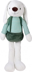 Roztomilý plyšový zajačik s výškou 60 cm v pruhovanom tričku a zelených nohaviciach na traky poteší každé dieťa. Je vyrobený z mimoriadne mäkkého, hebkého materiálu, má vyšívaný ňufáčik, bezpečné plastové očká a priateľský úsmev – ideálny na túlenie, hranie aj spanie.