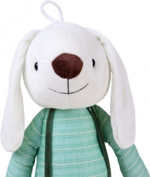 Plyšový zajačik v štýlových nohaviciach na traky je dokonalým parťákom do detskej izby. Vďaka mäkučkému povrchu sa skvelo hodí na každodenné túlenie, spoločné čítanie rozprávok aj pokojné zaspávanie. Pruhované tričko a zelené nohavice na traky dodávajú hračke čarovný a nadčasový vzhľad.