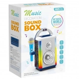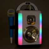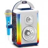Prenosný hudobný reproduktor s mikrofónom je dokonalý darček pre každého malého DJ-a. Tento farebný reproduktor s LED svetlami, mikrofónom a pohodlnou rukoväťou poskytuje všetko potrebné pre skvelú diskotéku kedykoľvek a kdekoľvek.