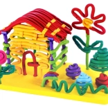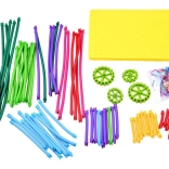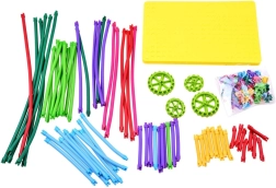 Tento pestrý set kombinuje mäkké penové „makaróny“, plastové kolieska, spojky a základnú podložku. Deti môžu tyčinky ohýbať, prepletať a spájať do 3D stavieb, postavičiek či vozíkov. Ideálne pre deti od cca 3 rokov – stavebnica podporuje sústredenie aj radosť z objavovania.