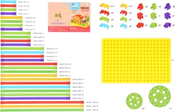 Súčasťou je žltá základná doska, spojky a kolieska pre pevné a funkčné modely. Set dopĺňa prehľadný obrázkový návod pre ľahký štart.