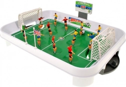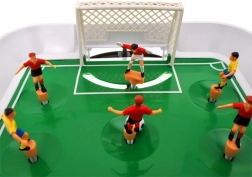 V balení nájdete 12 hráčov, bojisko, 2 bránky, loptičku, tabuľku skóre, stožiare a nálepky vlajok – stačí rozbaliť a hrať.