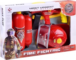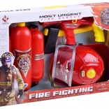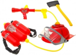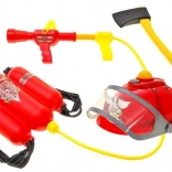 - Prilba so svetlom a zvukom, vodný batoh s hadicou a pištoľou, plastová sekera