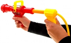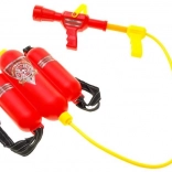 Tri nádrže na chrbte, hadica a pištoľ – stačí naplniť vodou a pumpovať. Ideálne na vonkajšiu zábavu a bezpečné „hasenie“ požiarov.