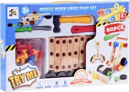Súčasťou balenia sú tiež detské nástroje – kľúče, skrutkovač, kladivko či posuvné meradlo – a obrázkový návod, ktorý pomôže s prvými výtvormi. Stavebnica podporuje spoločnú rodinnú zábavu a je skvelým tipom na darček pre deti od 3 rokov.