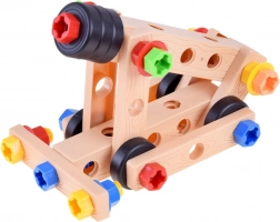 Táto kreatívna stavebnica je ideálnou voľbou pre malých konštruktérov. Vďaka premyslenému systému otvorov v „drevených“ plastových lištách a farebným skrutkám možno ľahko spájať jednotlivé diely a vytvárať stabilné modely. Deti si pri hre precvičia koordináciu oko–ruka, zručnosť aj trpezlivosť.