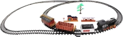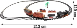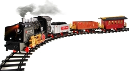 Podvozok bol starostlivo vyrobený s dôrazom na najmenší detail, poháňa ho klasický parný rušeň s výkonným pohonom a osvetlením lokomotívy počas jazdy. Okrem toho naša lokomotíva trúbi výstražný klaksón, a keď sa nádržka naplní vodou, začne z komína vychádzať dym, ako sa patrí na starý parný stroj. Počas jazdy vydáva typické pískanie, rachot kolies na koľajniciach, zvonenie zvončeka a ďalšie realistické zvuky. Tento veľkolepý model železnice s vozňami si určite užije každý začínajúci fanúšik modelovej železnice.