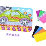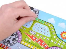 Deti lepia penové dieliky na očíslované políčka a ľahko vytvoria krásnu mozaiku auta. Ideálne pre prvé kreatívne projekty.