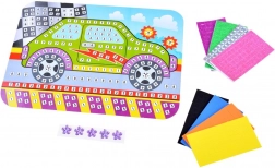 - Kartónová plocha s obrázkom, penové samolepky/štvorčeky, dekoratívne samolepky (kvietky)