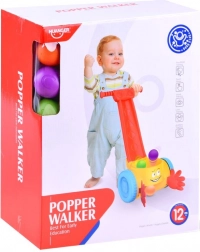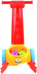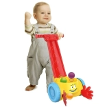 Interaktívne chodítko s usmievavou „tváričkou“ motivuje deti k pohybu a učeniu rovnováhy. Len čo dieťa začne tlačiť hračku, ozvú sa veselé melódie a striedajú sa zvuky motora, lietadla a lokomotívy. Vpredu sa otvára priestor s „labkami“, ktoré pri jazde zbierajú farebné loptičky a podporujú koordináciu oko–ruka.