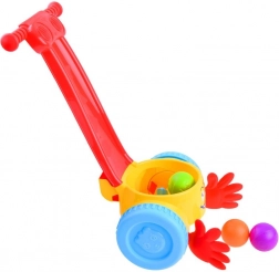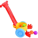 Hračka je vyrobená z kvalitného plastu v atraktívnych farbách. Vďaka veľkej rukoväti sa ľahko ovláda aj malým deťom. Súčasťou balenia sú tri plastové loptičky, ktoré možno vkladať, vyberať a znovu chytať – ideálne pre aktívnu a zábavnú hru doma aj na hladkom povrchu.