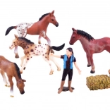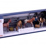 V balení nájdete hospodárku – opatrovateľku stáda, štyri roztomilé žriebätá v rôznych sfarbeniach a prvky ohrady, ktoré umožnia vytvoriť bezpečný priestor pre koníkov. Nechýba ani vrece s ovosom a balík sena – všetko pre autentickú farmársku atmosféru.