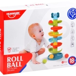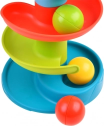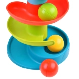 Sada obsahuje šesť jasne farebných guľôčok a šesť špirálových platforiem, ktoré vytvárajú atraktívnu, plynulú dráhu plnú pohybu a zvuku.