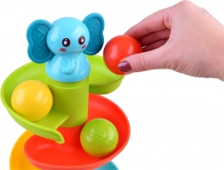 Zábavná guľôčková dráha so sloníkom ponúka deťom hodiny hry a rozvoja zručností. Vysoká špirálová veža so šiestimi poschodiami a roztomilým sloníkom navrchu podporuje jemnú motoriku, koordináciu oko–ruka a zmyslové vnímanie. Spustite farebné guľôčky z vrcholu a sledujte, ako sa kotúľajú po zatočených rampách až nadol za veselého hrkania. Odolné prevedenie z kvalitného plastu a bezpečné zaoblené tvary sú ideálne pre najmenších.
