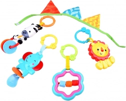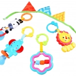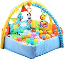 V balení nájdete 30 plastových loptičiek a štyri závesné hračky, ktoré pomáhajú vo vývoji motorických schopností.