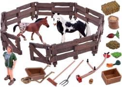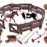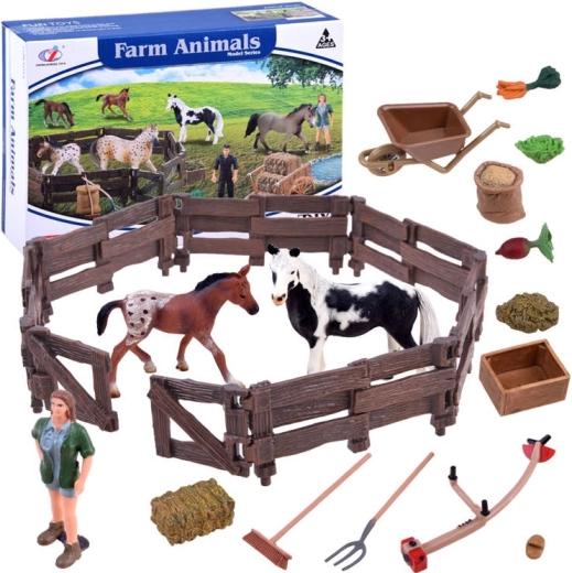 Táto komplexná sada prináša na váš stôl kompletnú scénu života na farme. Nájdete v nej veľkého koňa, roztomilé žriebä, figúrku farmára a množstvo nástrojov a doplnkov pre starostlivosť o zvieratá. Realistické proporcie, výrazné farby a precízne detaily robia zo sady skvelú hračku aj edukatívnu pomôcku.