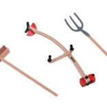 Sada obsahuje fúrik, koryto, vidly, metlu a kosačku, aby deti mohli napodobniť každodennú prácu na farme.