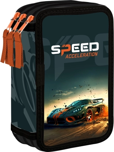 Školský trojposchodový penál bez náplne. Penál obsahuje 40 gumových pútok na uloženie všetkých písacích potrieb a drobností potrebných na vyučovanie. Penál má pevný zips s veľkými ťaháčikmi na jednoduchú manipuláciu. Jedno poschodie je vybavené priehľadným vreckom na týždenný rozvrh.