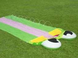 Montáž je rýchla a jednoduchá – jednoducho rozviniete skluzavku na tráve, pripojíte záhradnú hadicu a zábava môže začať!