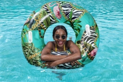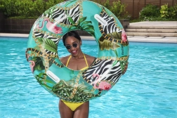 Užite si leto s pohodlným plávacím kruhom BESTWAY s priemerom 114 cm. Odolný PVC materiál, dve pevné úchytky na bezpečné držanie a štýlový palmový vzor potešia tínedžerov od 12 rokov aj dospelých. Ideálny do bazéna, na jazero aj k moru, ľahko sa nafukuje a vyfukuje a súčasťou je aj opravná záplata.