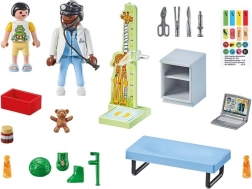 Pediater je tu pre tých najmenších pacientov, aby sa rýchlo zotavili. Priateľský medvedík poskytuje spoločnosť počas vyšetrenia. Táto súprava obsahuje lehátko, vtipnú váhu v tvare zvieratka na meranie, vymeniteľné obväzy a náplasti, čo umožňuje kombináciu s ďalšími nemocničnými súpravami PLAYMOBIL.