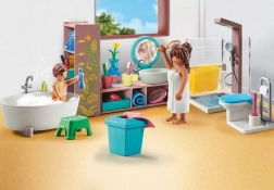 Vychutnajte si pohodovú atmosféru v štýlovej kúpeľni. Sada obsahuje voľne stojacu vaňu, sprchovací kút, umývadlo a sériu kúpeľňového vybavenia. Ideálna pre rozšírenie nového domu so zimnou záhradou. Možnosť kombinácie s ďalšími sadami série PLAYMOBIL Dom.