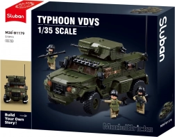 Sluban Typhoon je kvalitná stavebnica pre všetkých fanúšikov vojenskej techniky a akčného hrania. Model v mierke 1:35 vyniká realistickými detailmi, ako je otočná veža, otváracie časti a autentické doplnky pre figúrky. Stavebnica je vyrobená z odolného a nezávadného ABS plastu a súčasťou je prehľadný návod.