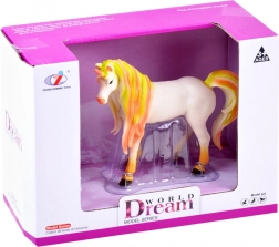 Biela figúrka s prechodovou hrivou a chvostom v odtieňoch ružovej, žltej a oranžovej upúta pozornosť a rozžiari každú hru.