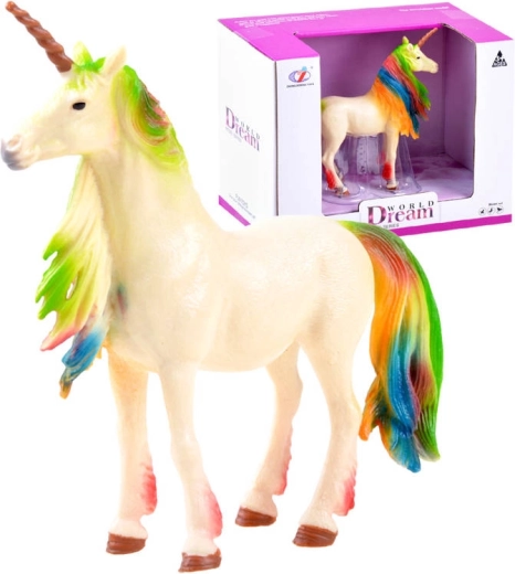 Výrazná hriva a chvost v dúhových odtieňoch dodávajú figúrke čarovný vzhľad a lákajú k hre aj vystaveniu na polici.