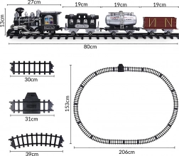 Tento vynikajúci model vlakovej súpravy je vybavený diaľkovým ovládaním a ponúka efektnú jazdu vpred i vzad. Lokomotíva svieti a vypúšťa dym z komína, čo pridáva na autentickosti jazdy. Zvukové efekty simulujú realistické zvuky vlaku ako píšťanie, klopkanie kolies o koľaje a zvonenie. Model je ideálnym darčekom pre všetkých fanúšikov vlakových súprav.