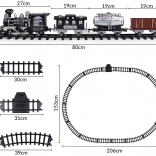 Súčasťou balenia je parná lokomotíva, vagóny, koľaje, diaľkový ovládač, dávkovač a skrutkovač. Na napájanie potrebujete 6 AA batérií (nie sú súčasťou balenia)
