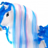 • Koník sa môže pohybovať vpred a vydáva realistické zvuky erdžania. Jeho vzhľad dopĺňa dlhá hriva a chvost spolu s modrým postrojom.
