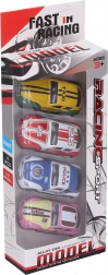 Táto parádna sada prináša štyri odolné a detailne spracované pretekárske autíčka, ktoré stačí natiahnuť dozadu a pustiť. Vďaka kompaktnej veľkosti 7 cm sa skvelo hodia na domáce preteky, prekážkové dráhy aj na cesty. Kovové prevedenie zabezpečuje dlhšiu životnosť a zábavu bez kompromisov.