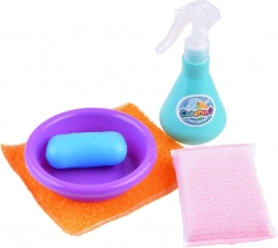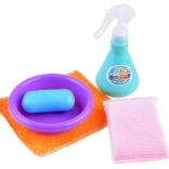 Obsahuje mop, metla, lopatku a sprejovú fľašu, čo poskytuje deťom pestré možnosti pre hru na upratovanie.