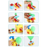 Sada umožňuje deťom počas pár stlačení nafúknuť balónik a sledovať, ako energia vzduchu rozhýbe autíčko alebo iný doplnok. Hravým spôsobom tak spoznávajú základy fyziky a mechaniky. Farebné prevedenie v žltej a modrej farbe láka k opakovanej hre a kvalitné spracovanie s certifikáciou CE prináša pokojný pocit z bezpečnej zábavy.