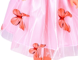 Táto pôvabná bábika sa stane vernou spoločníčkou na každodenné hry aj slávnostné príležitosti. Dlhé, mierne vlnité vlasy možno ľahko česať, zdobiť a upravovať, takže každý deň môže vyzerať inak. Ružové šaty s nežnými motýľmi a ľahkým tylom dodávajú bábike kúzelný vzhľad, ktorý deti okamžite zaujme.