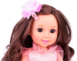 Elegantná bábika s výškou 36 cm poteší malé princezné na oslavách aj pri čajových posedeniach. Má dlhé, česateľné tmavé vlasy s kvetinovou sponkou, nosí ružové šaty s tylom a motýľmi a na nohách odnímateľné balerínky s mašličkami. Podporuje rozvoj fantázie, kreativity a sociálnych zručností a je ideálna pre deti od 3 rokov.