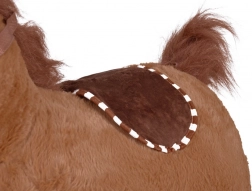 Hrejivý poťah so sedlom, uzdičkou a bohatou hrivou robí z koníka obľúbeného parťáka na hranie aj maznanie.
