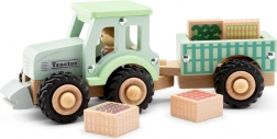 Táto krásna sada obsahuje traktor v jemnej zelenej farbe, odnímateľný valník a štyri drevené bloky s potlačami paradajok, baklažánu, mrkvy a brokolice. Deti môžu zeleninu nakladať, prevážať a vykladať, trénovať koordináciu ruka-oko a objavovať svet farmárov.