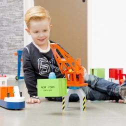 Podporuje detskú fantáziu a umožňuje vymýšľať vlastné príbehy z prístavu. Manipulácia so žeriavom rozvíja koordináciu rúk a jemnú motoriku, zatiaľ čo magnetické prvky uľahčujú zdvíhanie a presúvanie „kontajnerov“.