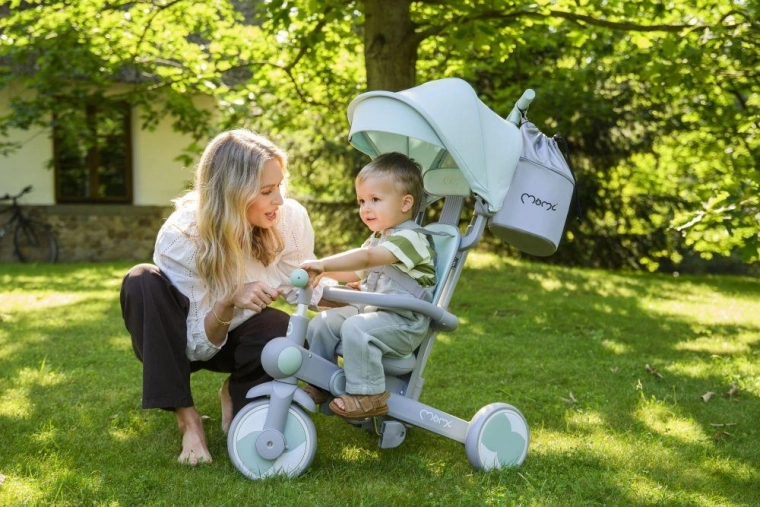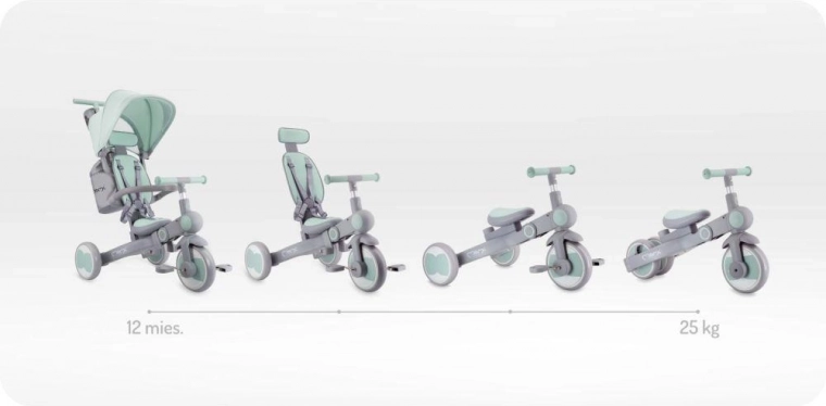 - 4v1: trojkolka, trojkolka umožňujúca dieťaťu samostatnú jazdu, odrážadlo a balančné kolo