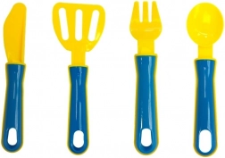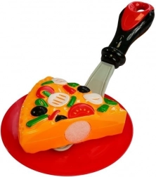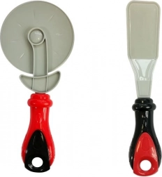 Súčasťou je plastový krájač na pizzu a obracačka s ľahkým úchopom, ideálne na bezpečné a zábavné hranie bez ostrých hrán.